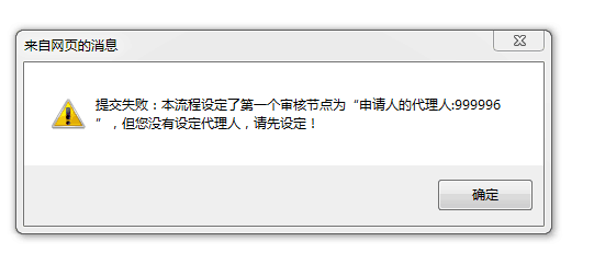提交失败:本流程设定了第一审核节点为“申请人的代理人:999996”,但您没有设定代理人,请先设定!如何解决?