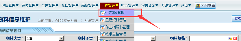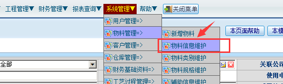 系统管理——物料管理——物料信息维护;