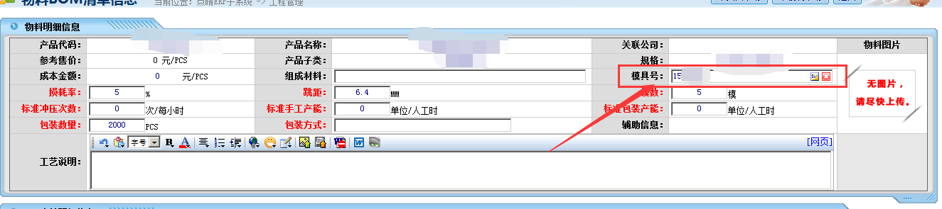 点晴模切ERP如何修改BOM中绑定的模具显示编号呢?