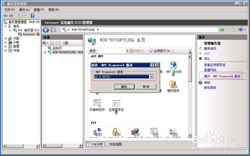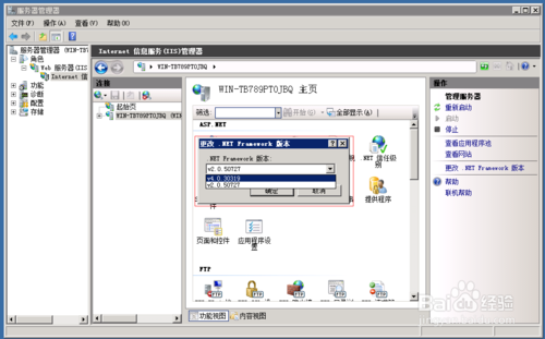 我在安装后,没有关闭服务器管理器,点更改.net framework版本一直都只有V2.0的选项,然后我关闭服务器管理器,重新打开后就出来V4.0版本了。