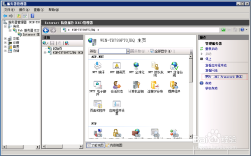 好了,下面进入主题,怎么把IIS .net framework 2.0版本升级到4.0呢,我们打开IIS,同样在最右侧找到更改.net framework版本