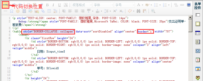 注意:在代码模式下改完后需切换到表格模式下再保存