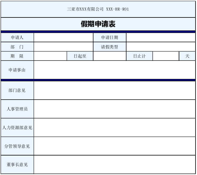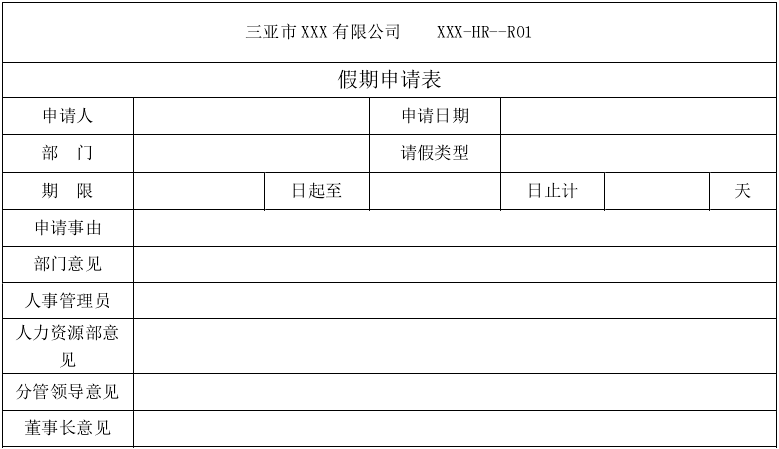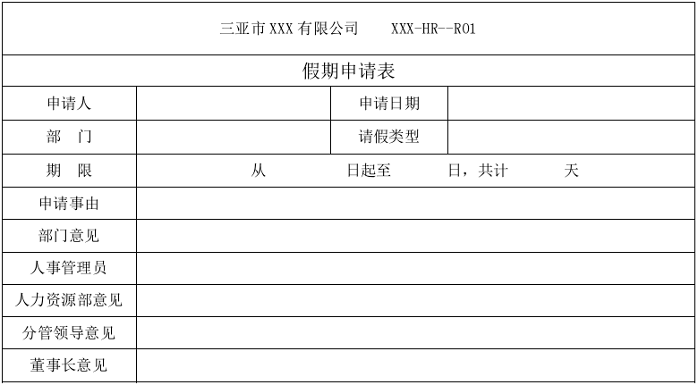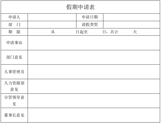 一切的开始,都是从客户的需求出发的。在需求交流阶段,客户会提出自己的想法,调研各个部门的现有的和有计划还没做的流程表单需求,同时会提供现有的纸件表单给我们,让我们按照其进行设计。请记住,这只是客户的原始需求,他们不懂实现技术,更为专业性的需求和调整还是需要我们后面帮助其挖掘和实现。最后我们收集、整理后再跟客户进行确认。具体的需求交流技巧不是本文想要表述的重点,这里仅以一个具体的表单开始,向大家介绍表单的设计过程。例如,客户让我们做一个客户请假单,原始表单如下图: