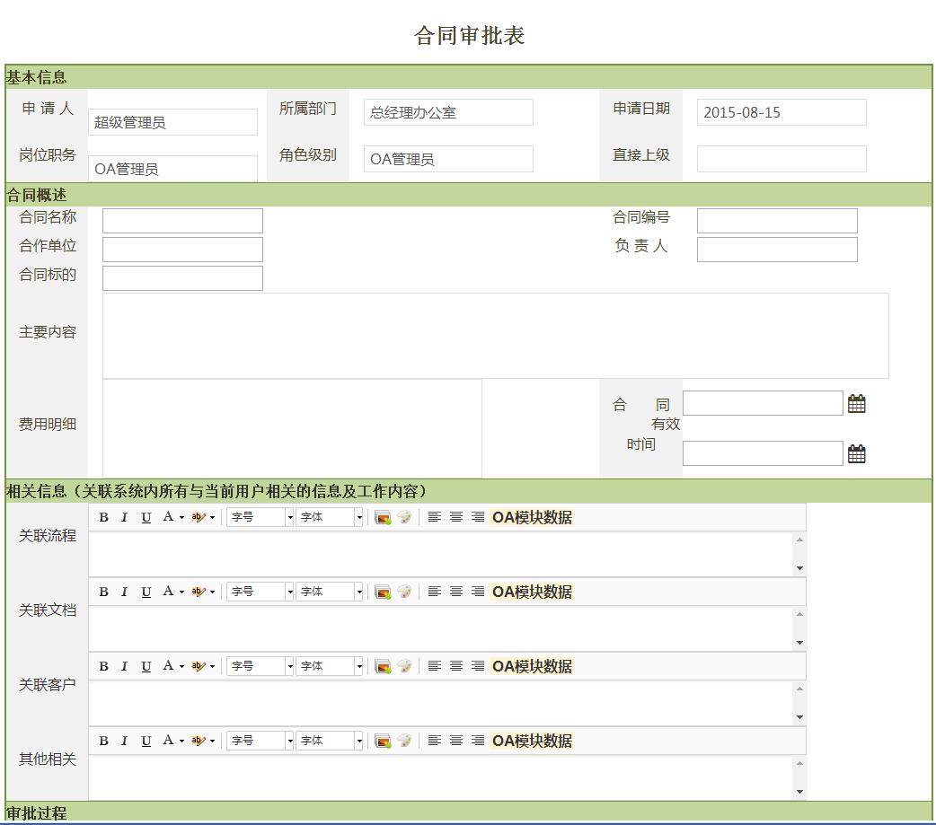 到此,我们对一个表单的外观设计基本结束了。但是最终这些设计的实现则需要通过技术手段实现。我们前面说过,OA厂家的设计器是不能保证我们设计出理想的表单,而是要结合设计器、Excel表格,表单HTML代码,和设计规范进行实现的。下一节具体讲述如何实现。