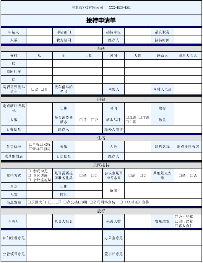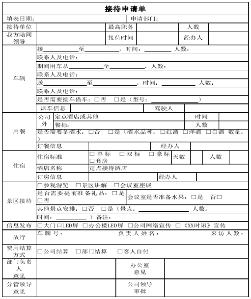 原始表单:接待申请单