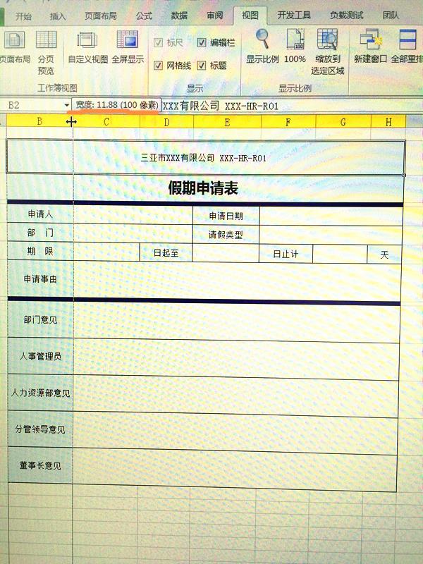 鼠标点中列的边缘并按住不放,会出现行宽的提示,如上图中红色线部分(100像素。这样,在Excel精准设计表格、表单尺寸后,相应的就可以)计算出控件的大小了。
