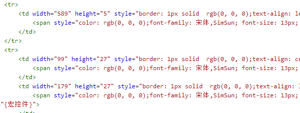 HTML代码中截取的一段。其中width和height就是尺寸的参数。通过一一设置这些尺寸,就可以实现和Excel表格中一模一样的表单设计了。