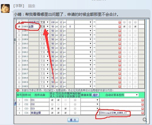 :帮我看看哪里出问题了,点晴OA工作流申请的时候金额那里不会合计,要如何解决?