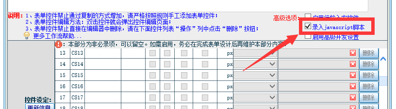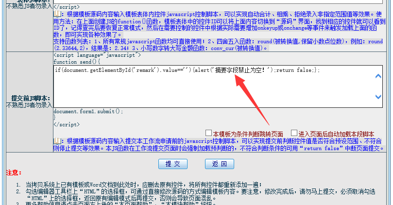 勾选高级选项中的“录入Javascript脚本”,然后在提交前JS脚本位置输入: