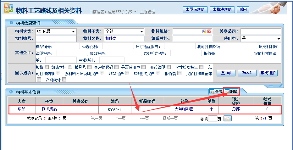 完成后点击页面最下方的“修改物料资料”按钮即可。