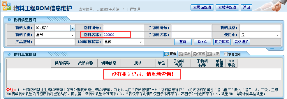 点晴模切ERP成品资料在BOM里面找不到,什么原因?