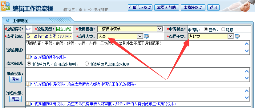 :工作流中设计的考勤申请流程在业务管理看不到,要如何设置才能看到?![]() 业务管理-》人力资源管理中的考勤申请对工作流中设计的考勤申请大类和子类有特殊要求,必须将该流程的大类设置为:人事、小类设置为:考勤类,然后才会出现在业务管理-》人力资源管理中。 ![]() ![]() 该文章在 2016/5/31 14:44:54 编辑过 |