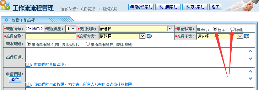 本功能用户高级用户满足复杂流程申请需求,普通用户无需使用本功能,直接使用默认的“显示"即可。