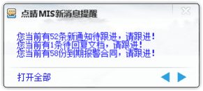 1、点晴MIS系统中各类新信息(聊天、通知、工作流、ERP单据审批等)实时无延迟提醒;