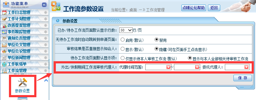 点晴OA系统工作流在审核人出差或请假时,如何设置委托其他人代办啊? 方法有二: 、安装点晴MIS信息通手机APP,可以在手机上实时接收点晴MIS系统发出的新信息提醒,并无需登录电脑,在手机上就可以直接进行审批、转发、发起等各类操作,无需委托他人代自己审核,是用户首选方案,详细介绍如下:http://im.click...