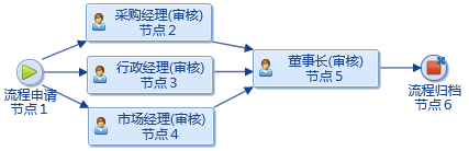 点晴OA工作流中实现串行单人审核、多人并行会审、并行单人单审和条件跳转审核描述如下:、串行单审:说明:各个审核节点依次逐级进行,每个节点上只能设置了一个审核岗位或审核人,审核过程中任意一个节点审核通不过被驳回,就不再进行到下一个节点了。图例: 上图中必须从节点2-》节点3-》节点4-》节点5-》节点6依次进行,任意一...