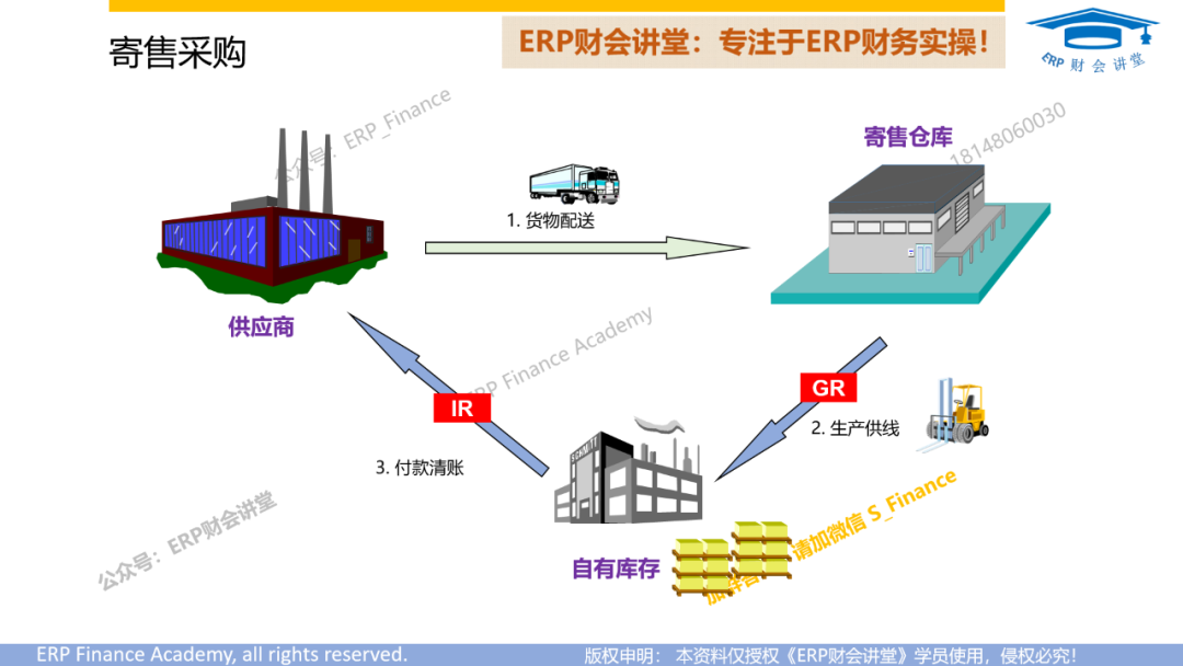 寄售采购业务,通俗的讲,就是用了再付款。供应商将货物送到我方仓库,或者第三方仓库,使用后再和供应商结算。使用之前,货物所有权归属供应商,在系统中我们可以看到有多少供应商寄售库存。通过寄售的方式,可以减少资金占用,对采购方有利。供应商寄售业务流程如下:接下来,给大家演示寄售的流程。第一步,创建寄售采购订单,用于接收供应商...
