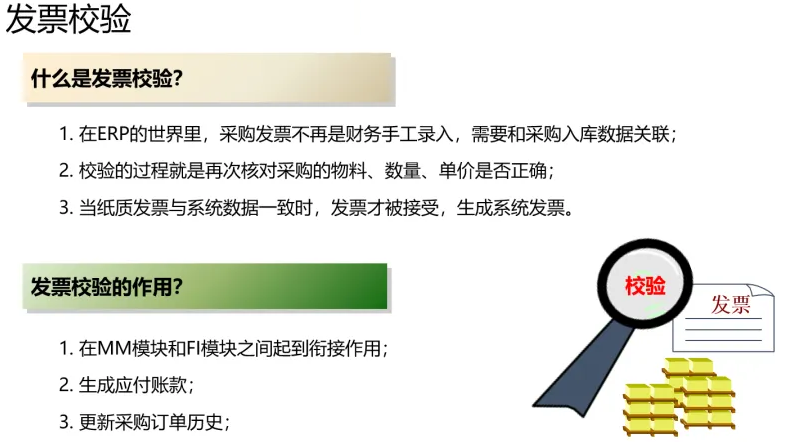 发票校验是SAP采购流程中的重要环节,收到供应商发票之后,需要在SAP中匹配入库记录,并核对数量和金额是否正确,如有差异需要进一步确认原因,必要时将发票退回给供应商。SAP中发票校验可以通过事务码MIRO由财务一步处理,也可以先由业务预制发票(MIR7),然后财务审核过账发票(MIR4)。本文以MIRO为例,介绍SAP...
