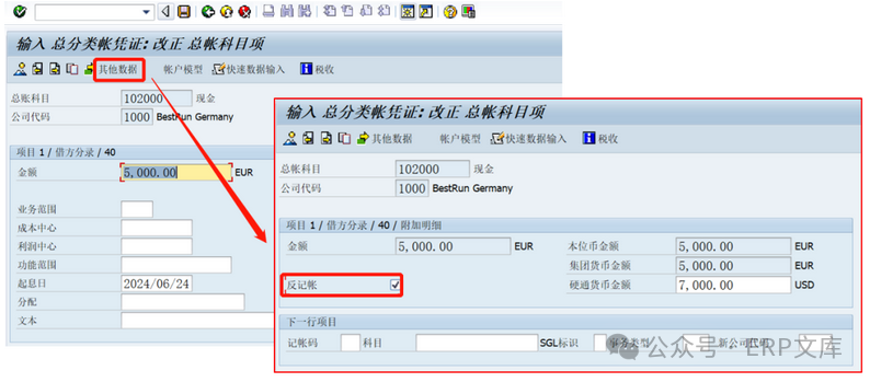 SAP软件和国内ERP软件不一样,它在录入会计凭证时是不可以录入负数的(即红冲凭证),因此无法直接实现传统意义上的红字冲销。比如,如下SAP正常和冲销业务产生会计凭证如下:正常的业务凭证:借:204000(管理费用-差旅费)5000贷:102000(现金)5000标准冲销产生凭证:借:102000(现金)5000贷:2...