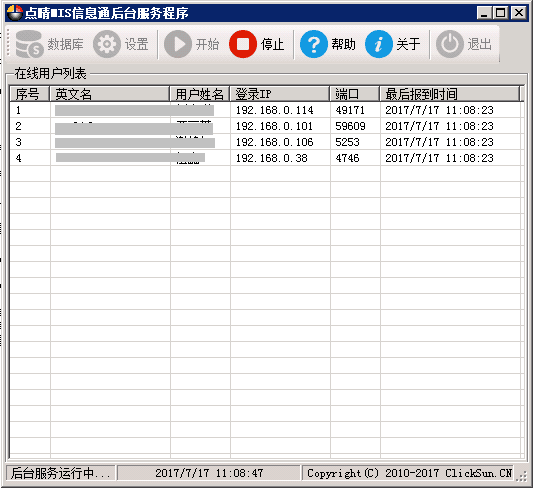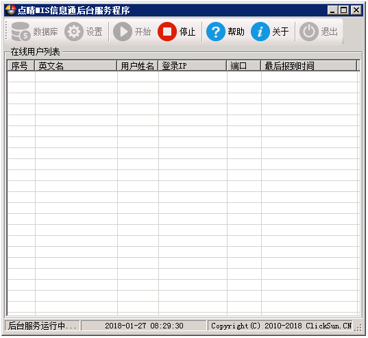 、然后找到并打开点晴MIS信息通后台服务程序(一般在D:\clicksun\CS_Service\CS_Service.exe下面),进入以下后台程序界面:
