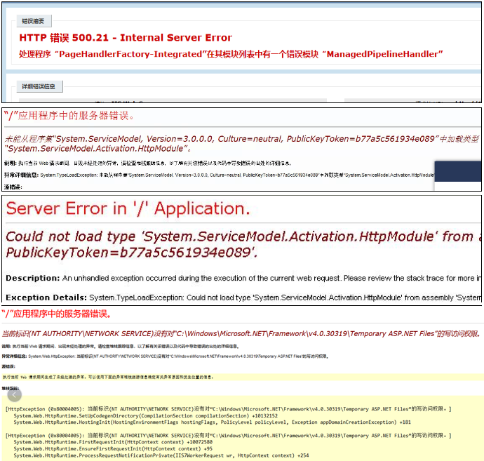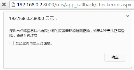 如果不是OA服务器环境检测正确的提示,而是显示以上乱码,则必须按照以下教程安装配置: 点晴MIS信息通(手机APP及PC客户端)后台服务程序所需.NET环境安装配置说明[ 62954] 如果出现以下错误提示,则必须按照以下教程配置修正asp.net环境: