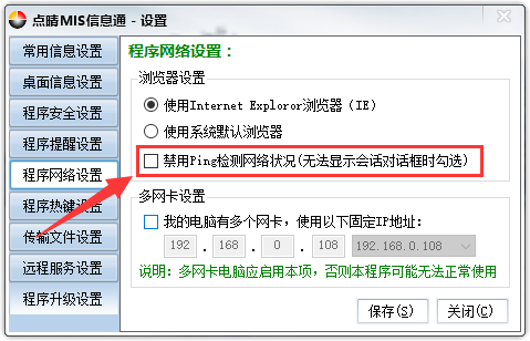 上面的“禁用ping检测网络状况”在点击用户姓名无法弹出对话窗口时应勾选,否则无需勾选