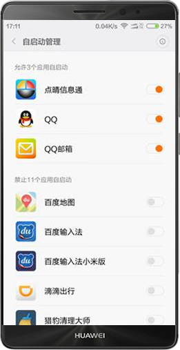 为了可以正常收到APP的消息推送提醒,安卓手机必须设置点晴APP为自启动,如下图所示: